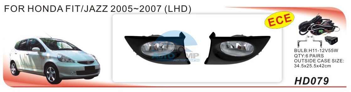 Противотуманные фары ADL/DLAA HD079 для Honda Fit/Jazz (2004-2008), провода, кнопка